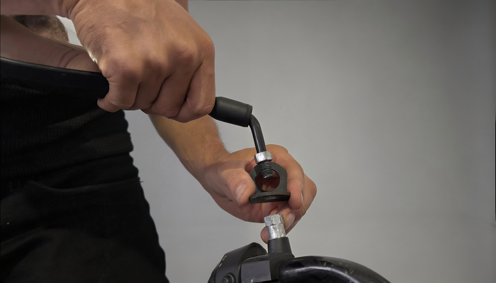 Step 3: Put EB in the universal mount and tighten lug nuts on the mount to lock the device in place