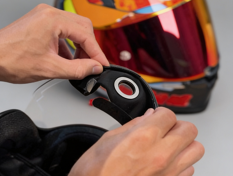 For Half face helmets: Press firmly against the bottom visor of your helmet, ensuring it sticks properly