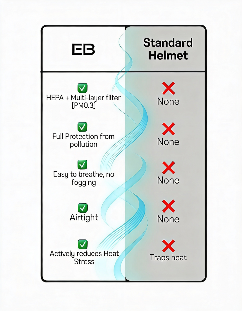 The Future of Riding is Fresh Air At Easi Breezi, we believe that the thrill of the open road shouldn't come with the cost of breathing in exhaust fumes and urban smog. By combining advanced engineering with medical-grade HEPA filtration, we've created a shield for your lungs that fits right into your gear. Our mission is simple: to protect riders from dangerous traffic pollutants while delivering a constant stream of cool, filtered air—making every journey safer, cleaner, and more comfortable than ever before.